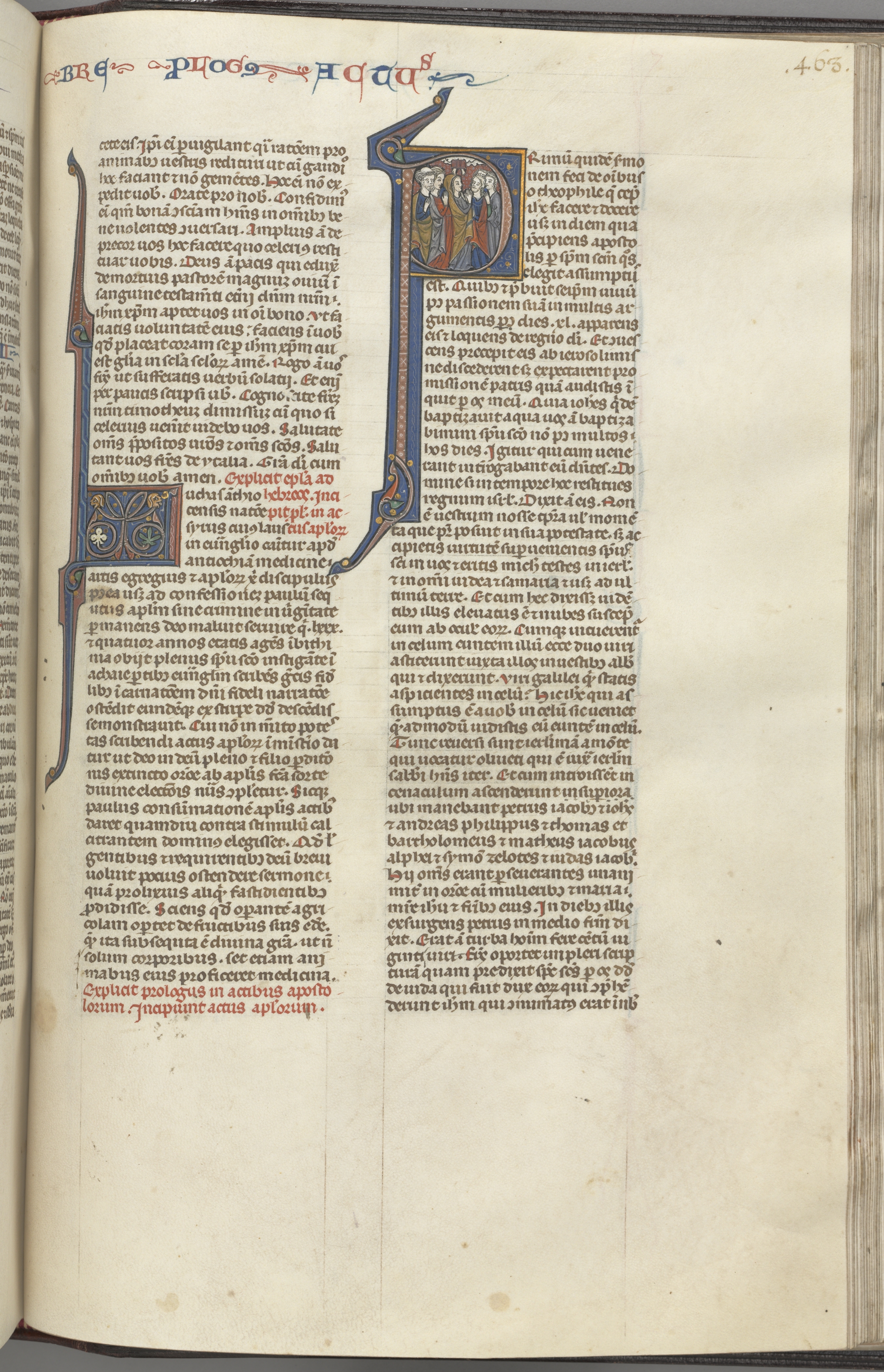 74. Fol. 463r, Acts, historiated initial P, the Ascension