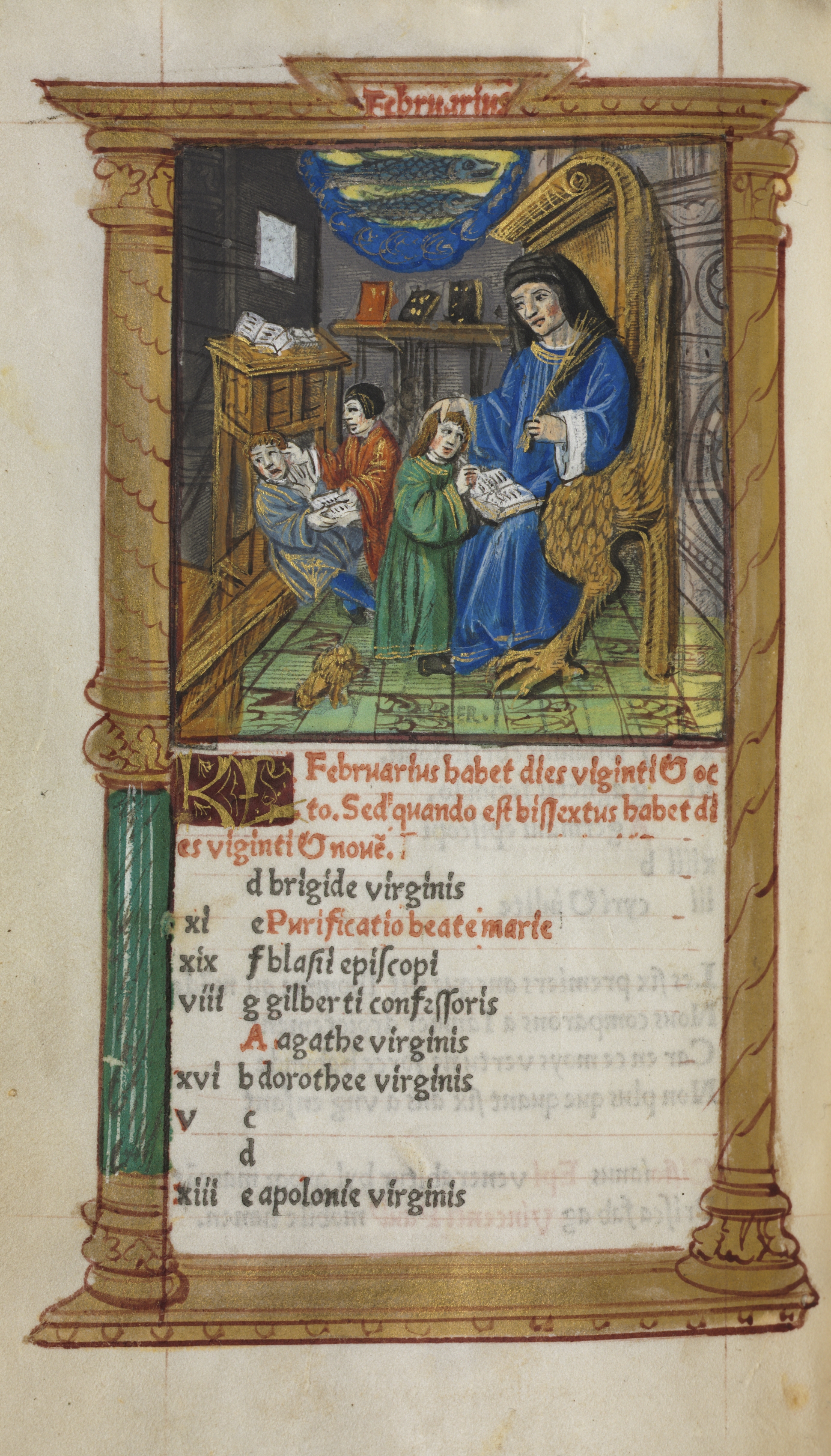 Printed Book of Hours (Use of Rome): fol. 3v, February calendar illustration
