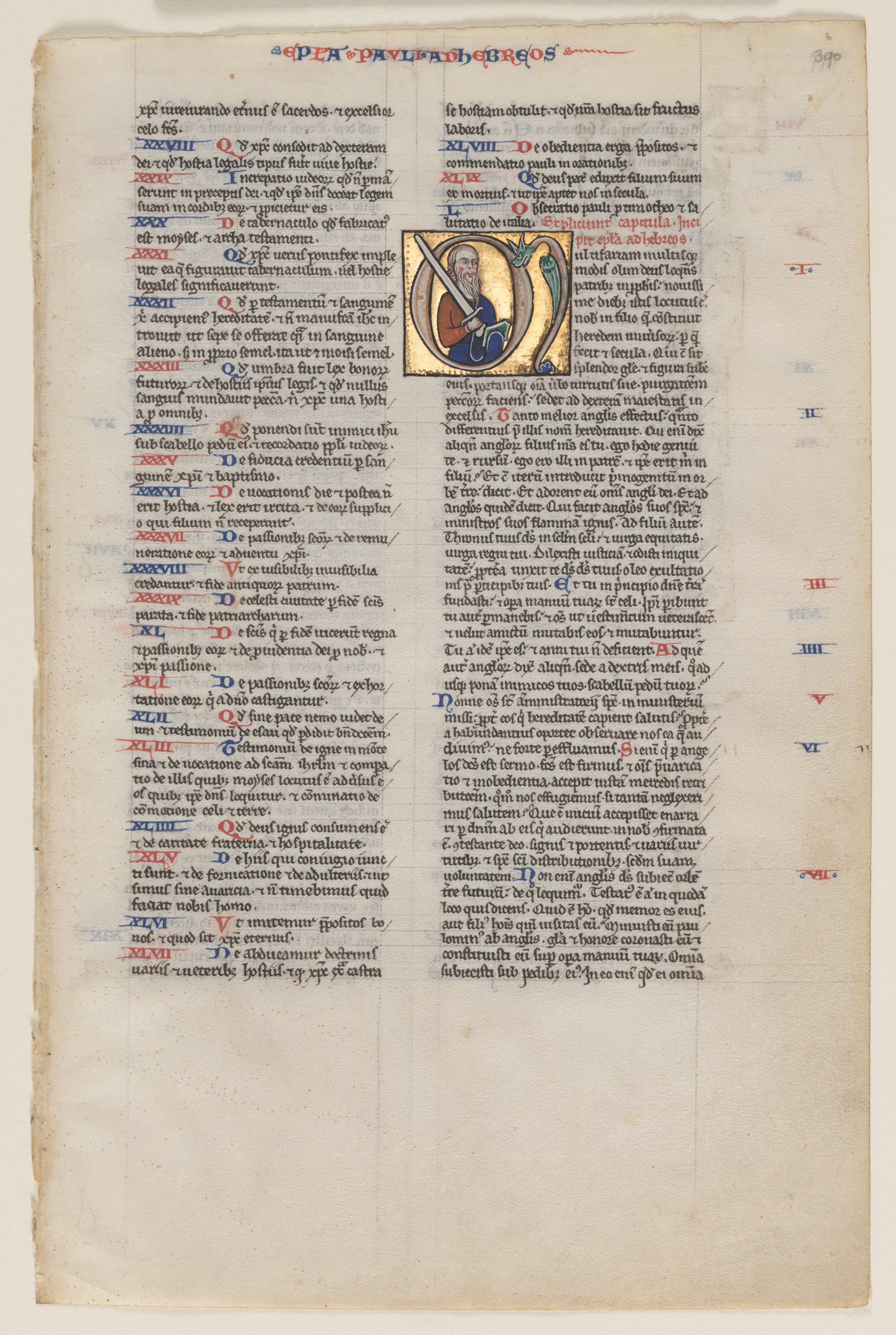 Leaf with Initial from a Latin Bible: Initial M: St. Paul with a Sword and a Book