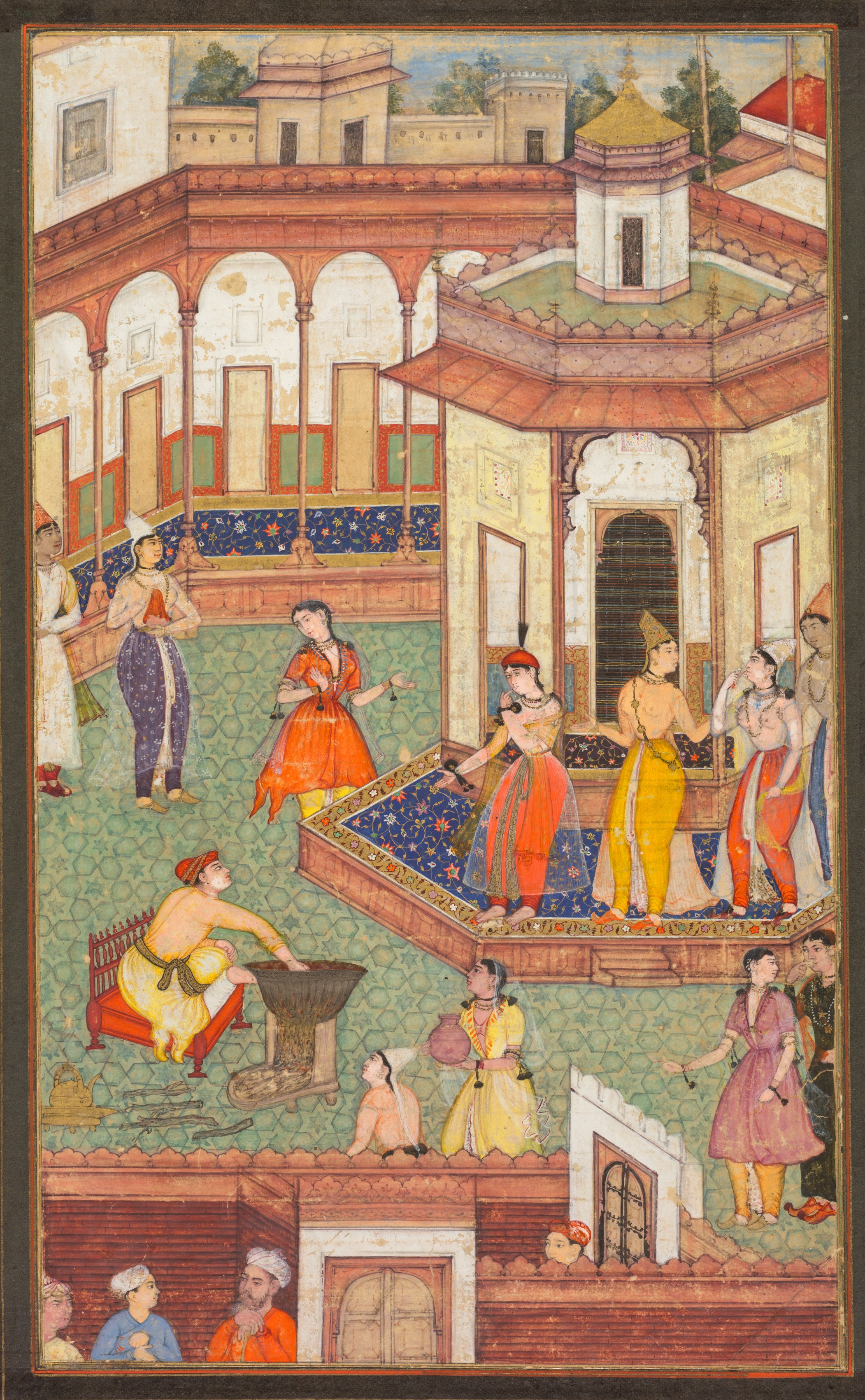 A princess with attendants on a terrace