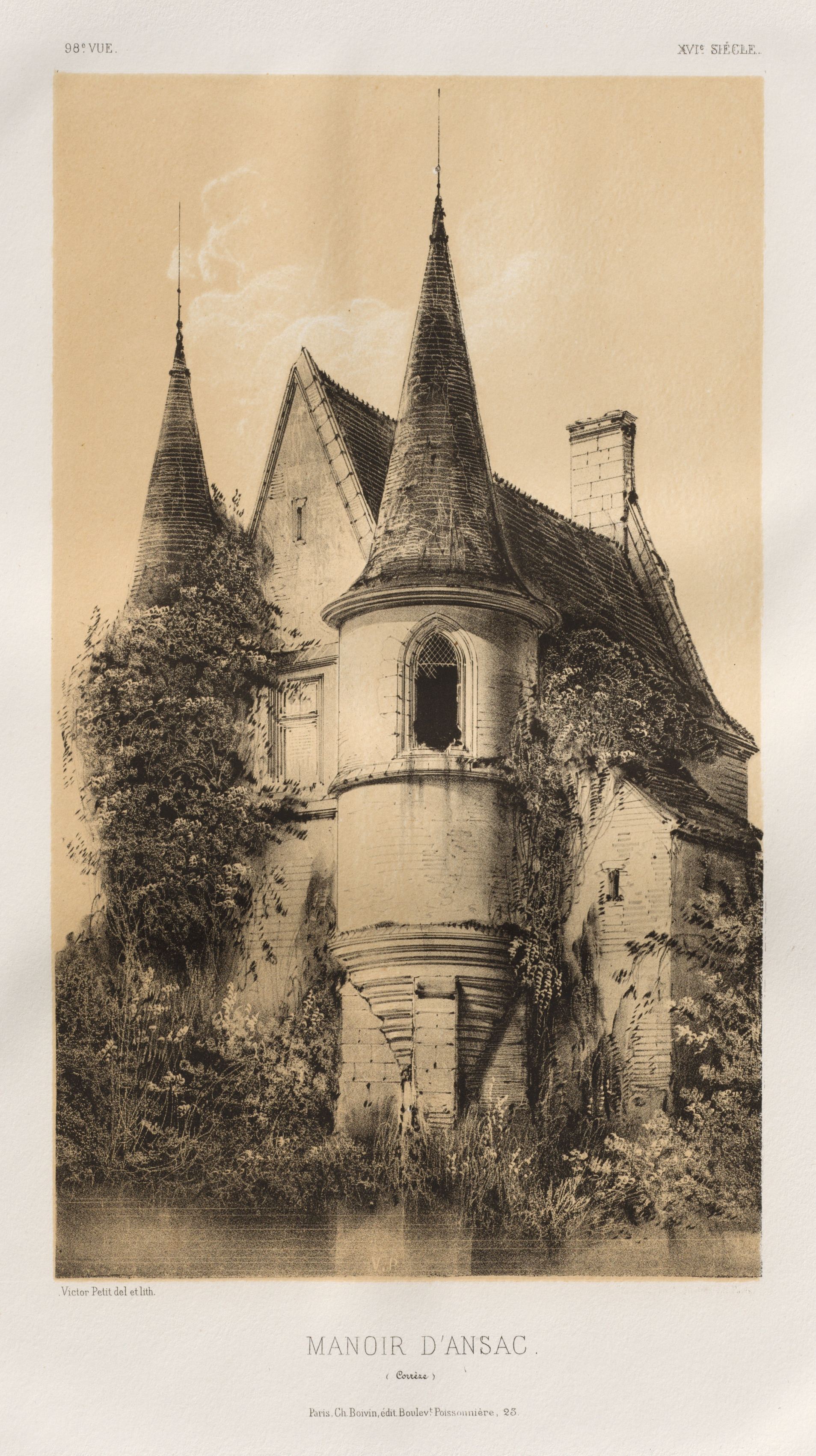 Architecture Pittoresque ou Monuments des XVeme. Et XVIeme. Siecles: Chateaux de France des XV et XVI Siecles: Pl. 98, Manoir d'Ansac (Corrèze)