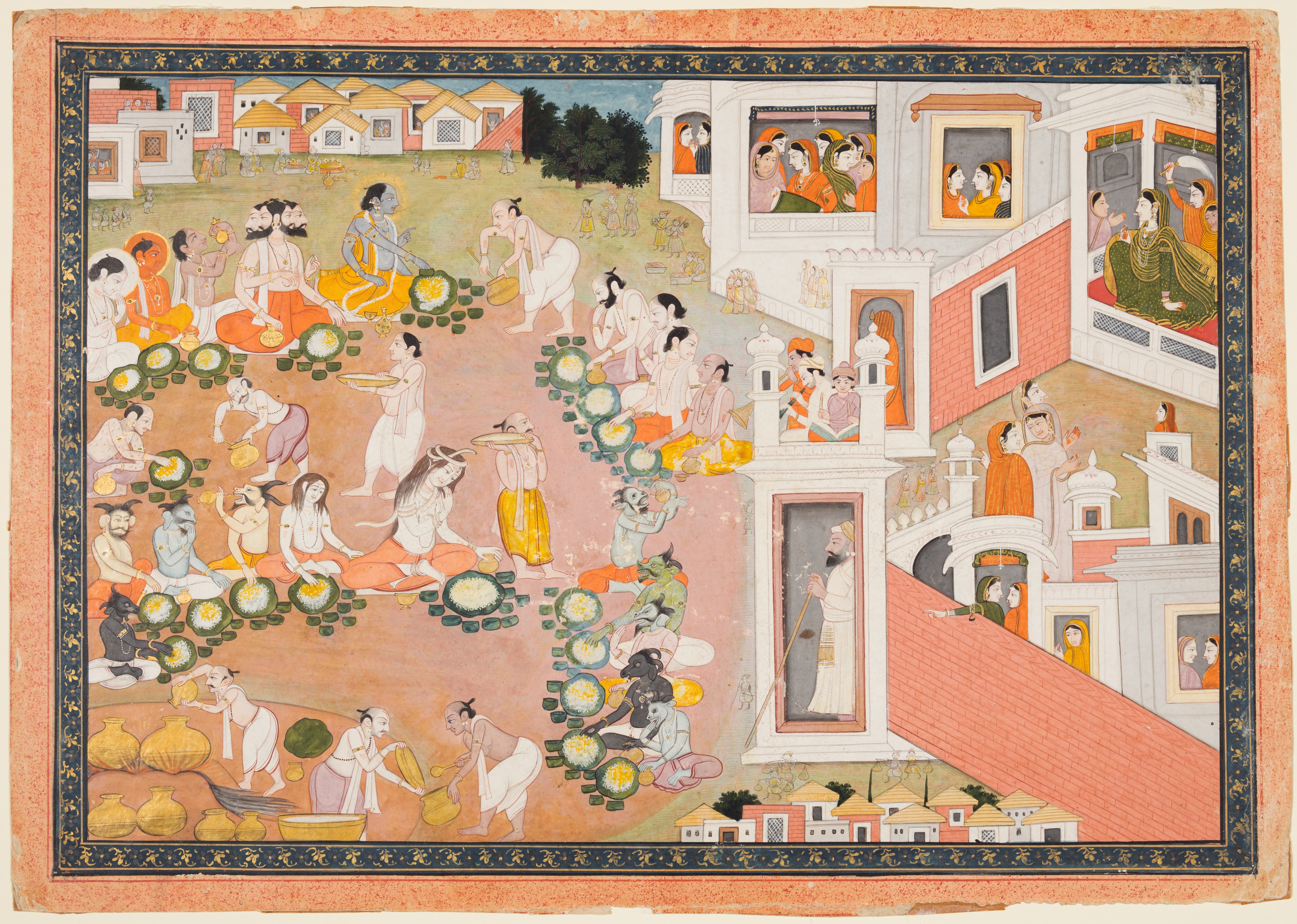 Feast where Vishnu decides he will incarnate as King Dasharatha’s sons, from Chapters 14–15 of the Bala Kanda (Book of Childhood) of a Ramayana (Rama’s Journey)