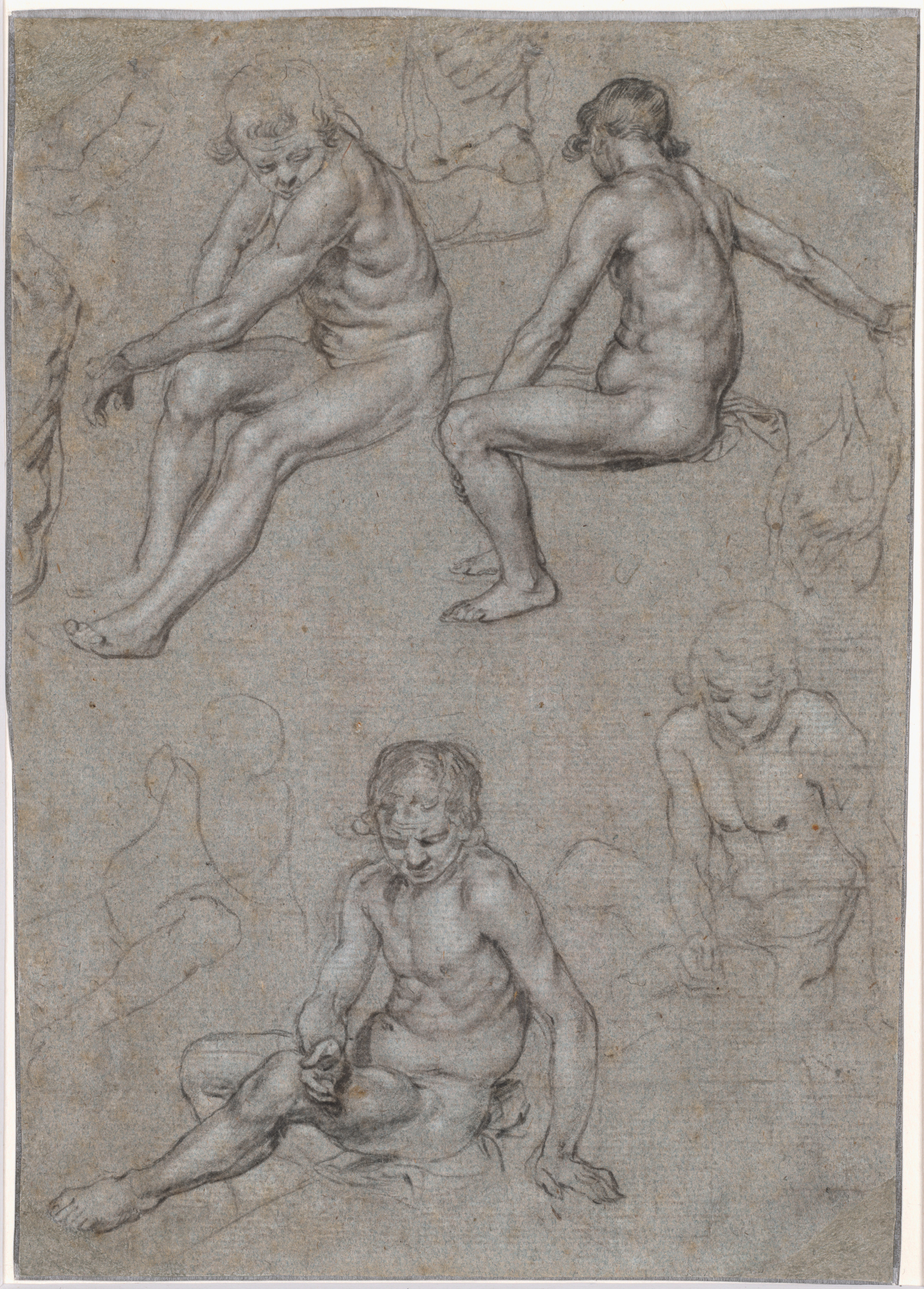 Study for the Nude Youth over the Prophet Daniel (recto); Figure Studies for the Sistine Ceiling (verso)