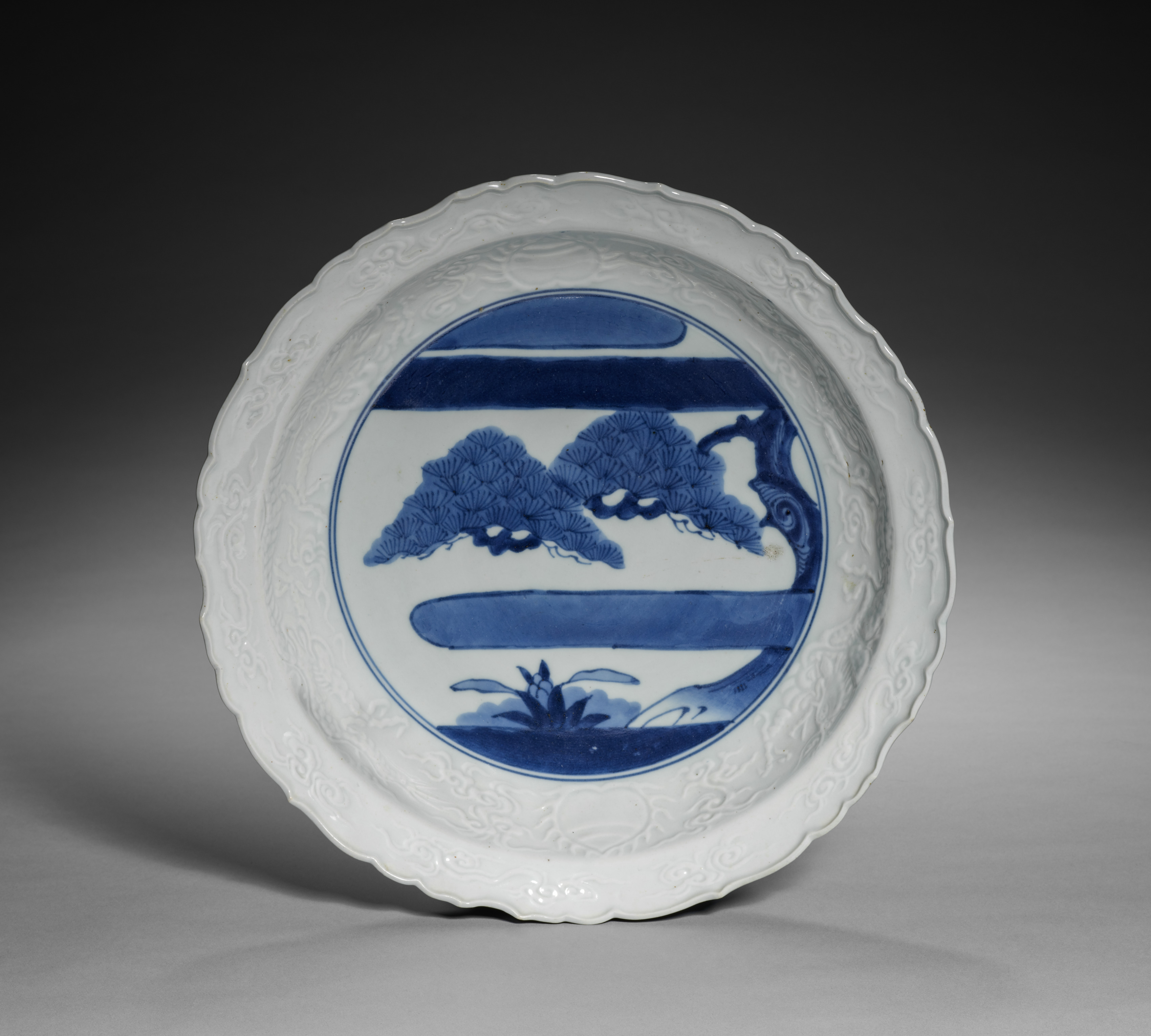 Dish with Blossoming Plum and Crescent Moon