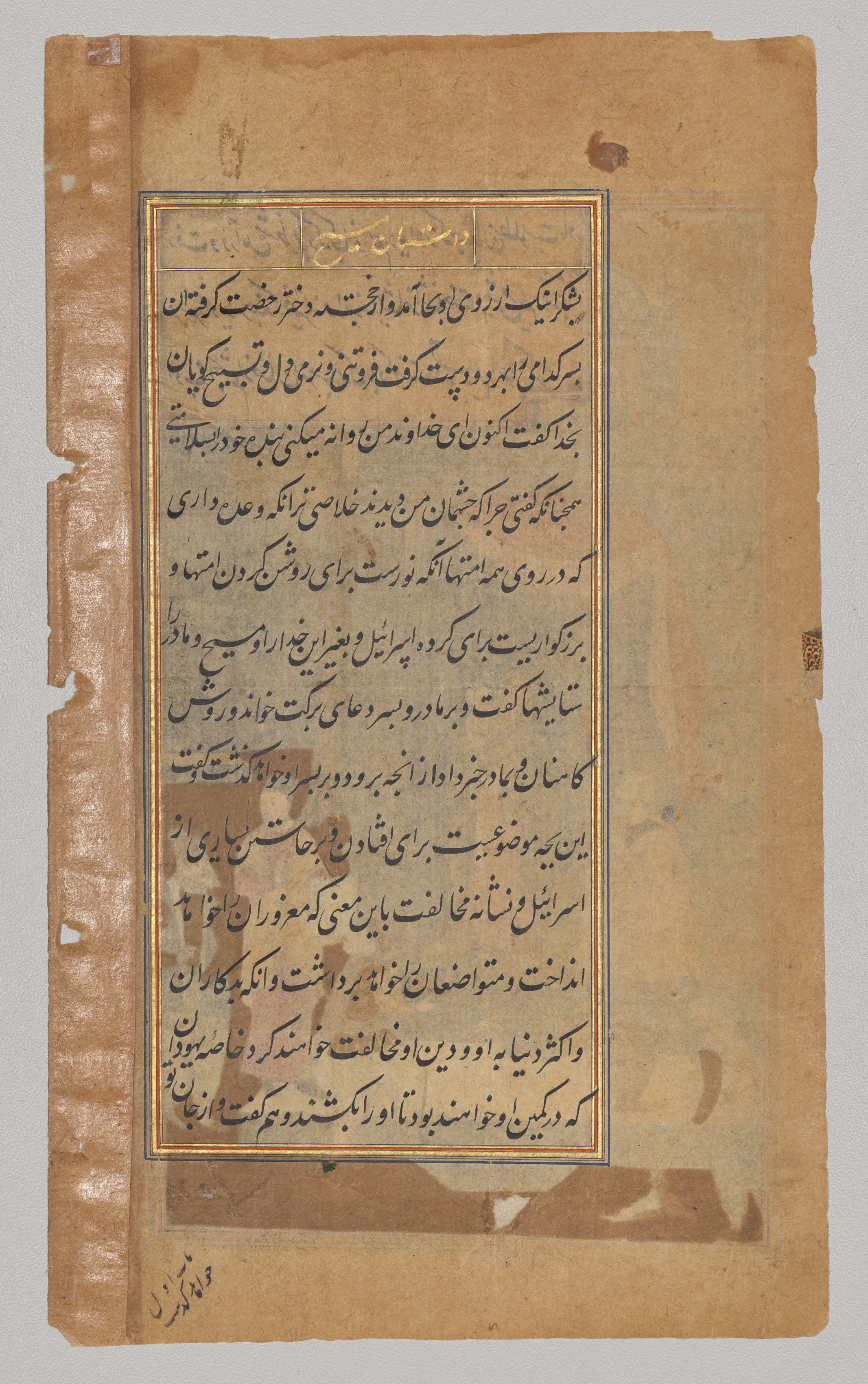 Text, folio 15 (verso), from a Mirror of Holiness (Mir’at al-quds) of Father Jerome Xavier