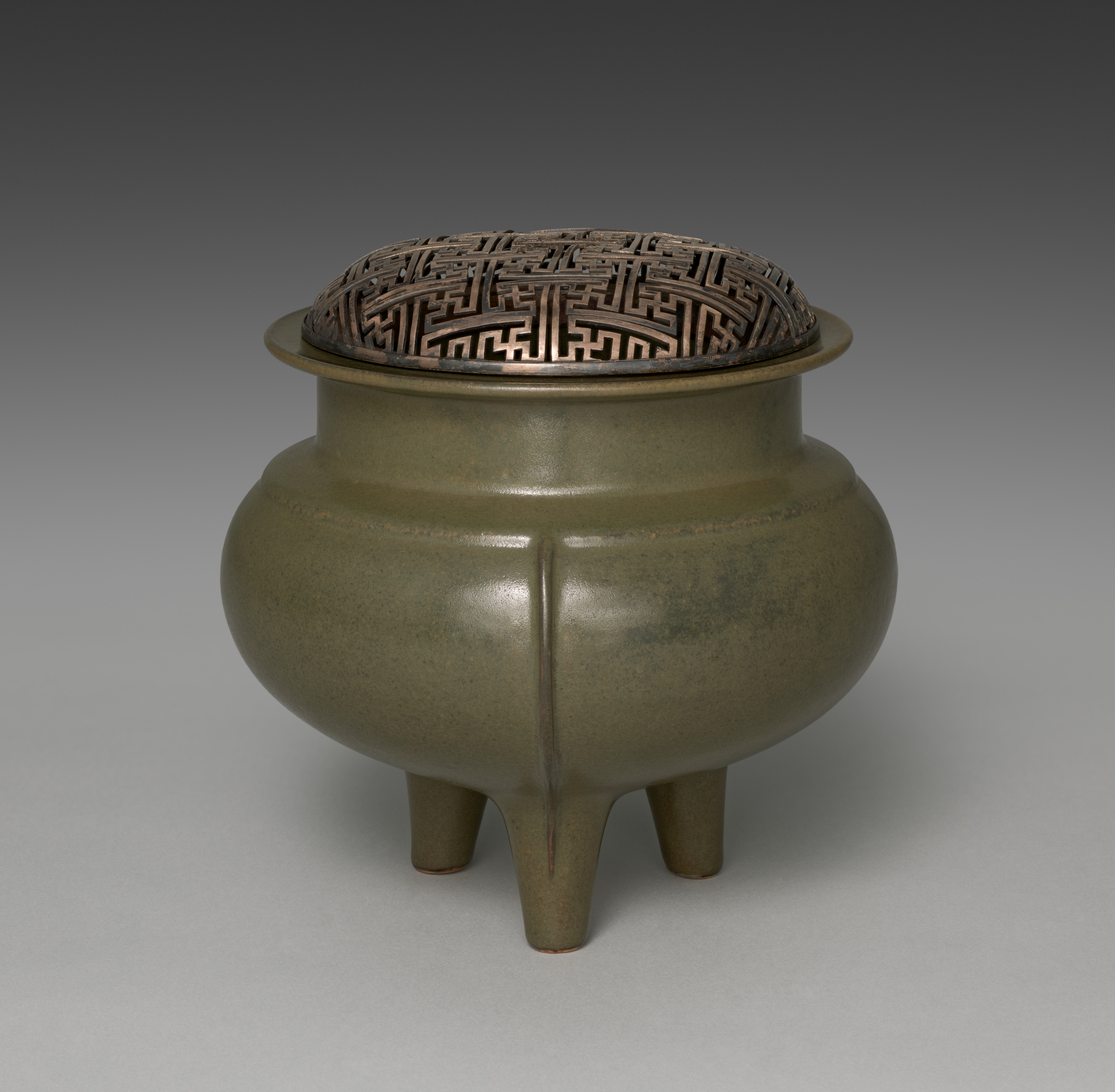 Incense Burner (koro) and Cover with Molded and Reticulated Design