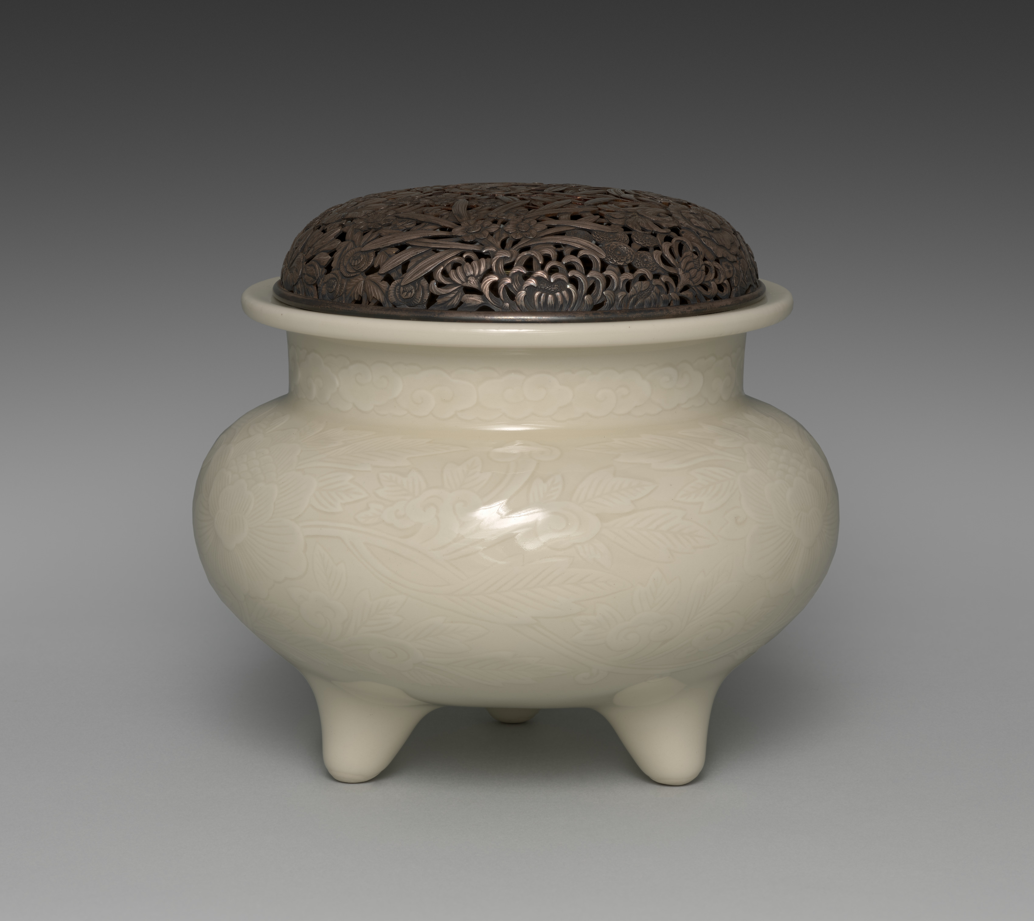 Incense Burner (koro) and Cover with Molded and Reticulated Design
