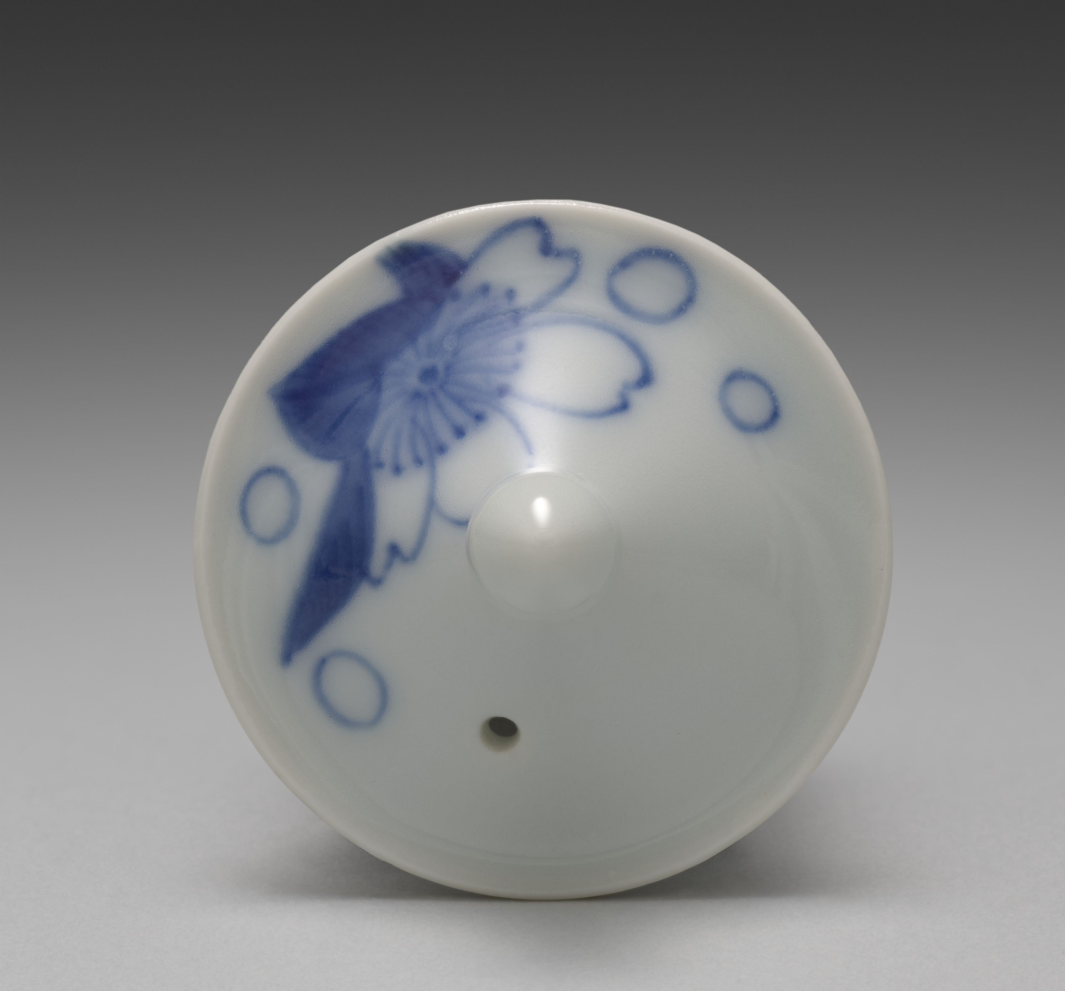Lid for a Sake Pourer with Chrysanthemum, Orchid, and Plum