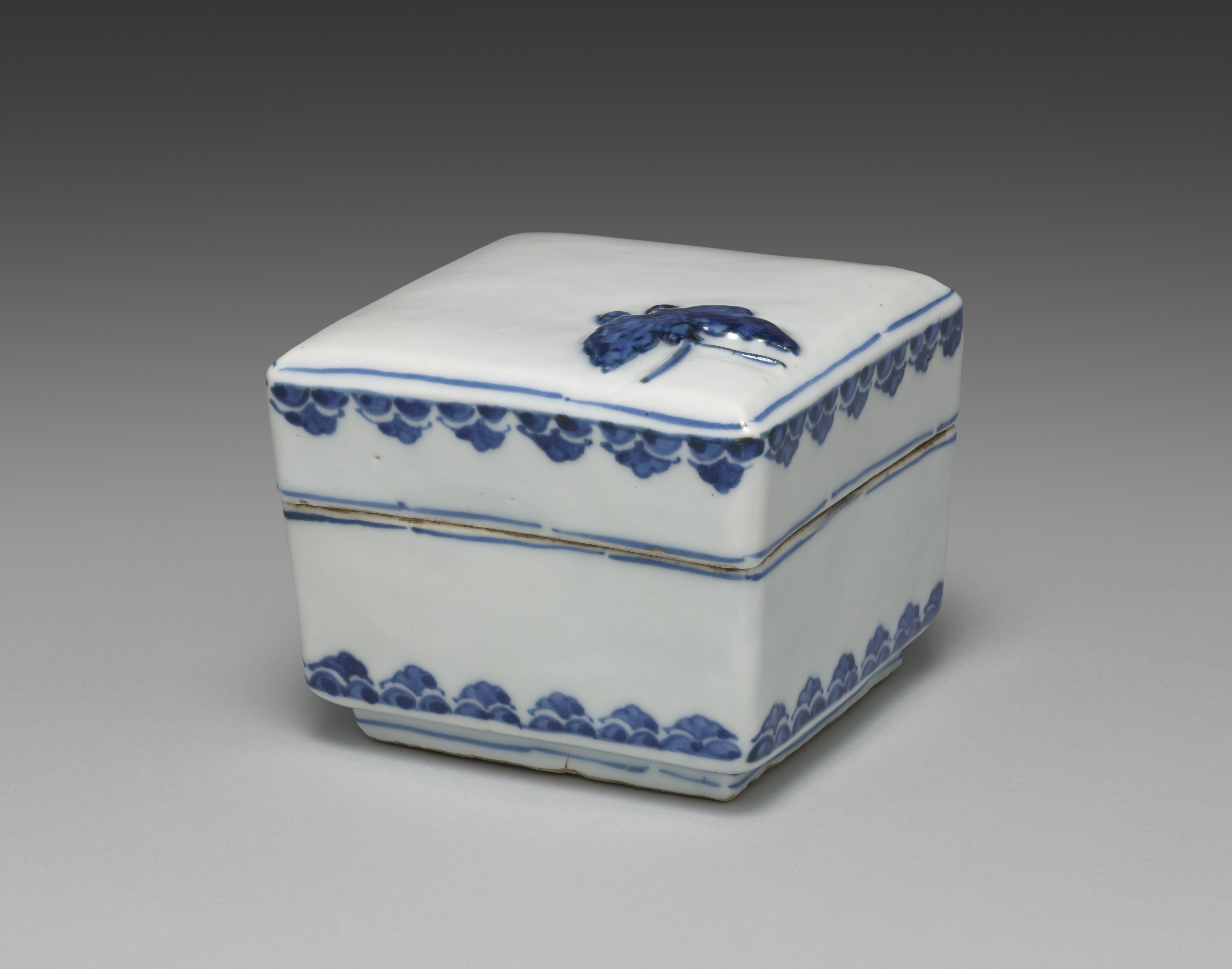 Box from set of five decorated with cranes and clouds