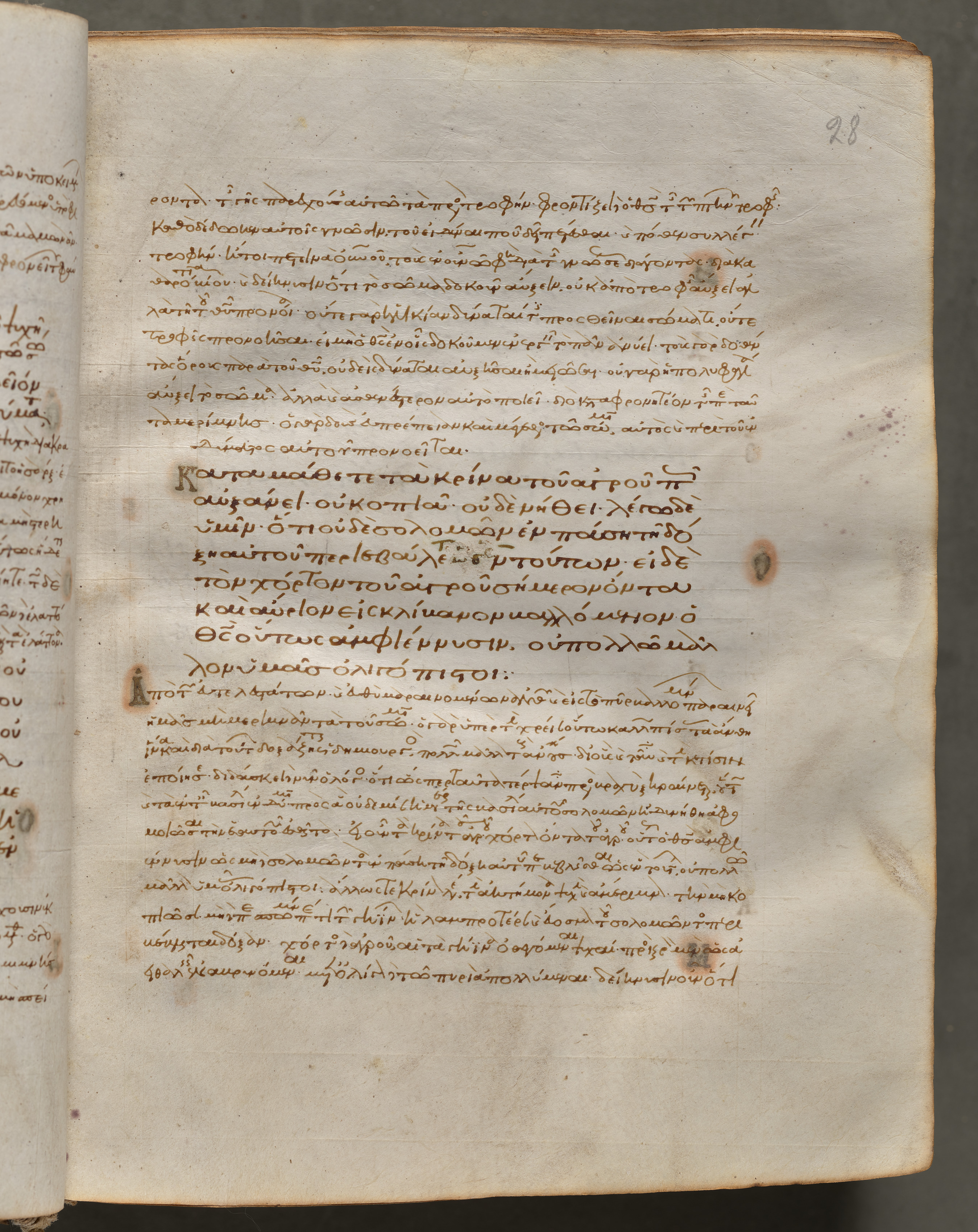 Text, folio 28 (recto), from a Gospel Book with Commentaries