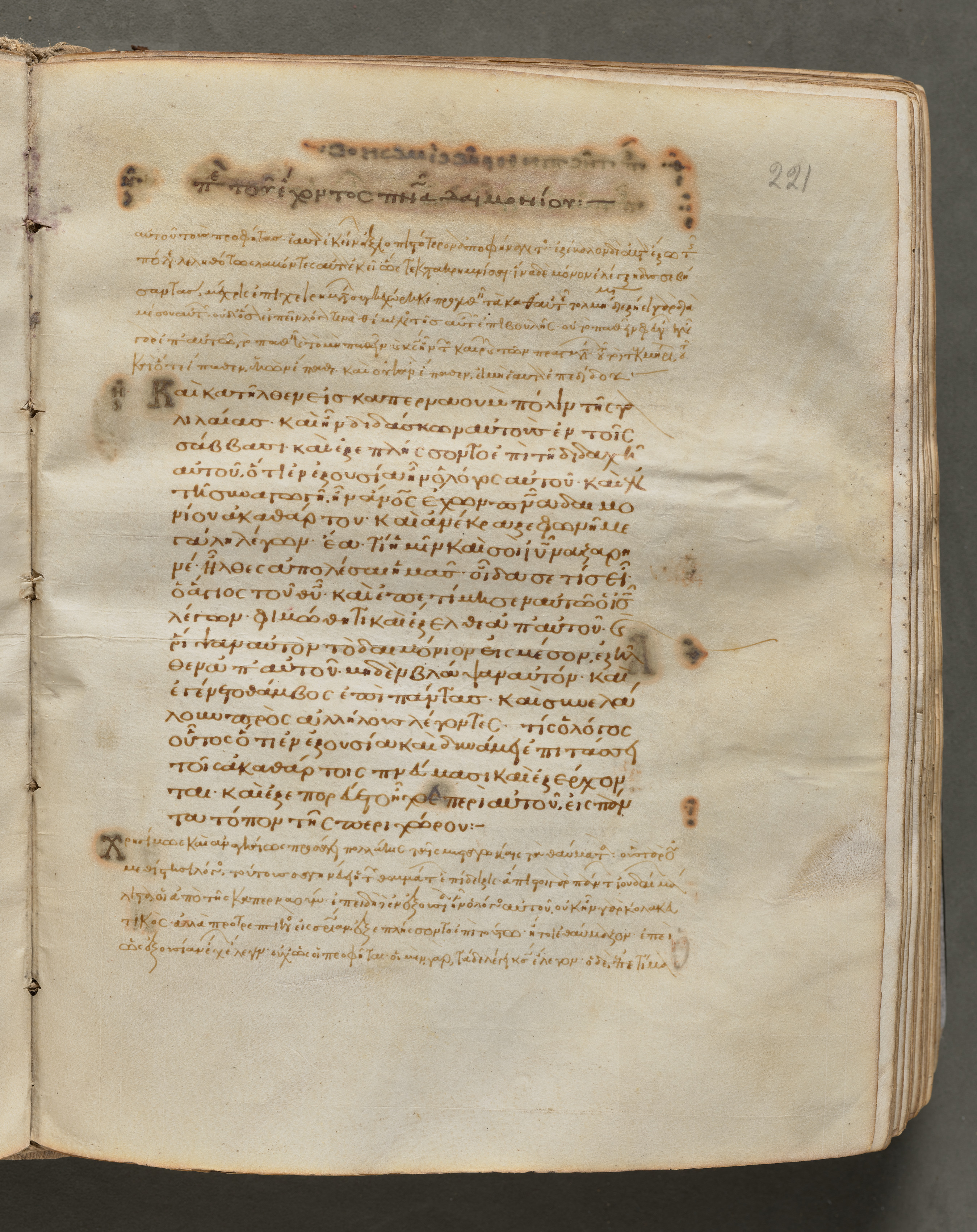 Text, folio 221 (recto), from a Gospel Book with Commentaries