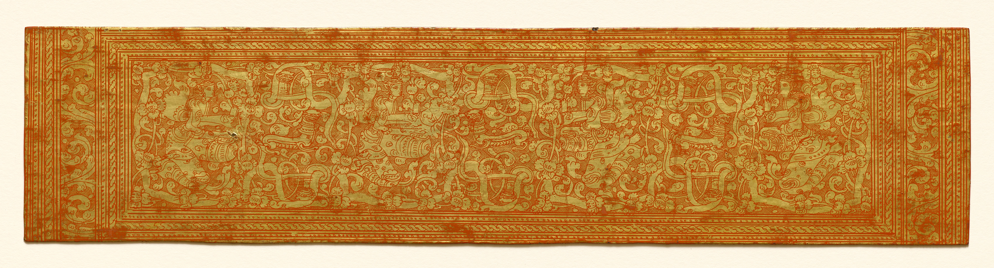 Pair of Manuscript Covers: Prajnaparamita Flanked by Bodhisattvas (above); Vajrasattva(?) Flanked by Bodhisattvas (below)