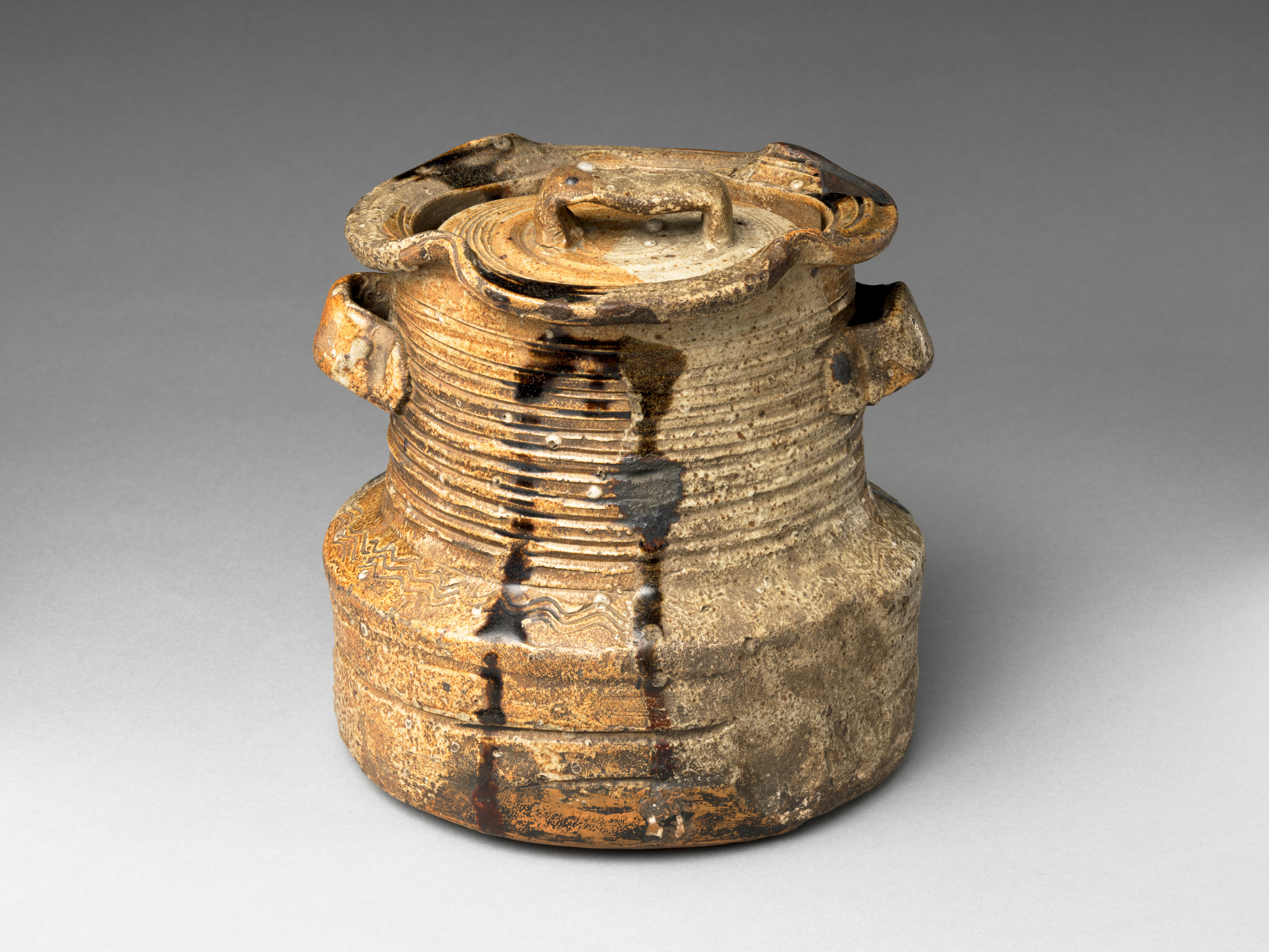 - Stoneware with natural ash, feldspar, and iron glazes (Mino ware, Iga type)