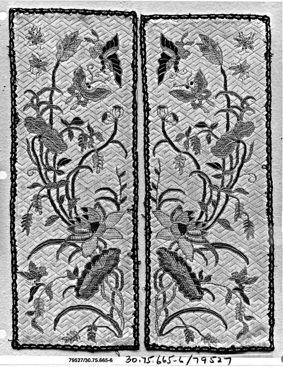 - Silk, metallic thread; on silk